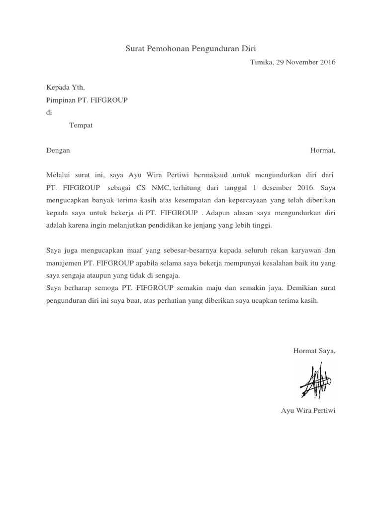 33 Contoh Surat Resign Fifgroup Koleksi Letter